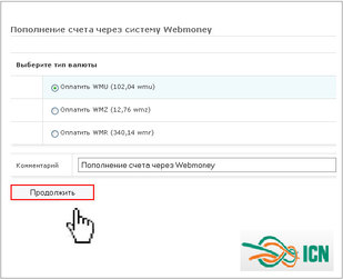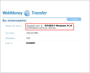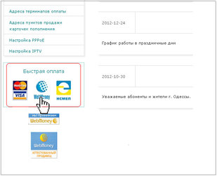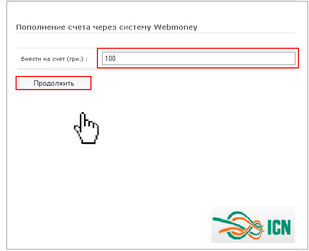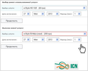 Увійдіть у Особистий кабінет на сайті компанії "ICN" та оберіть спосіб оплати Visa/MasterCard